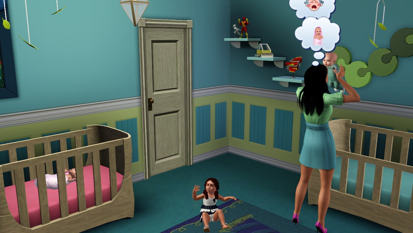 In particular, if one of the twins cried, the other was sure to start the second she attempted to calm the first one down.